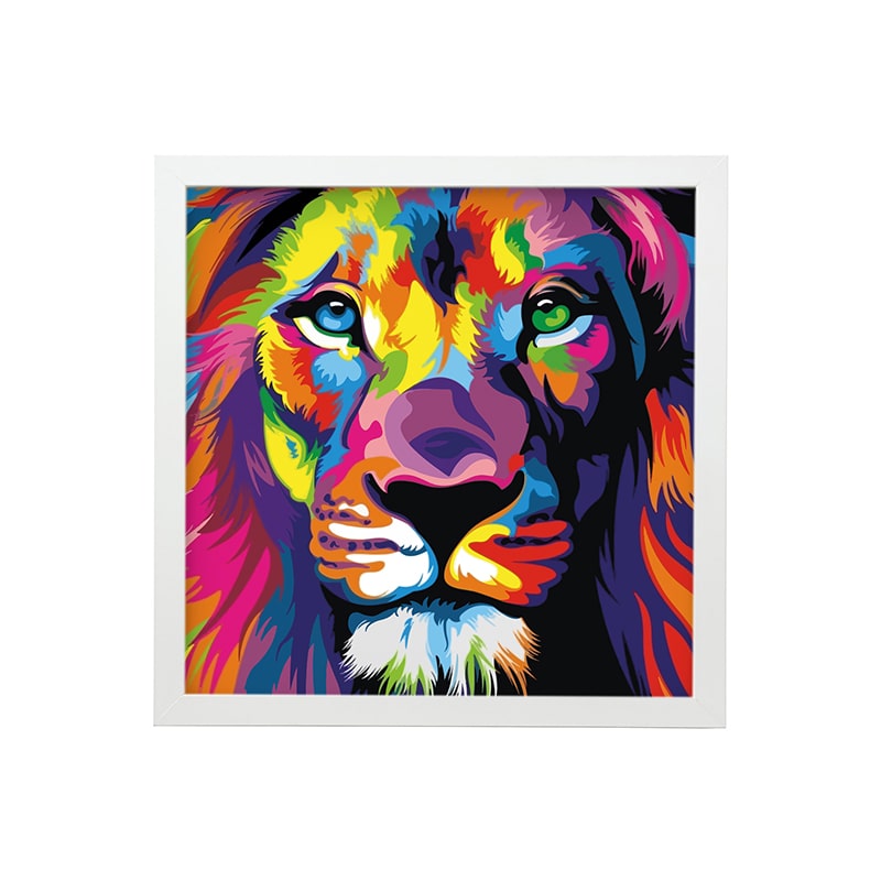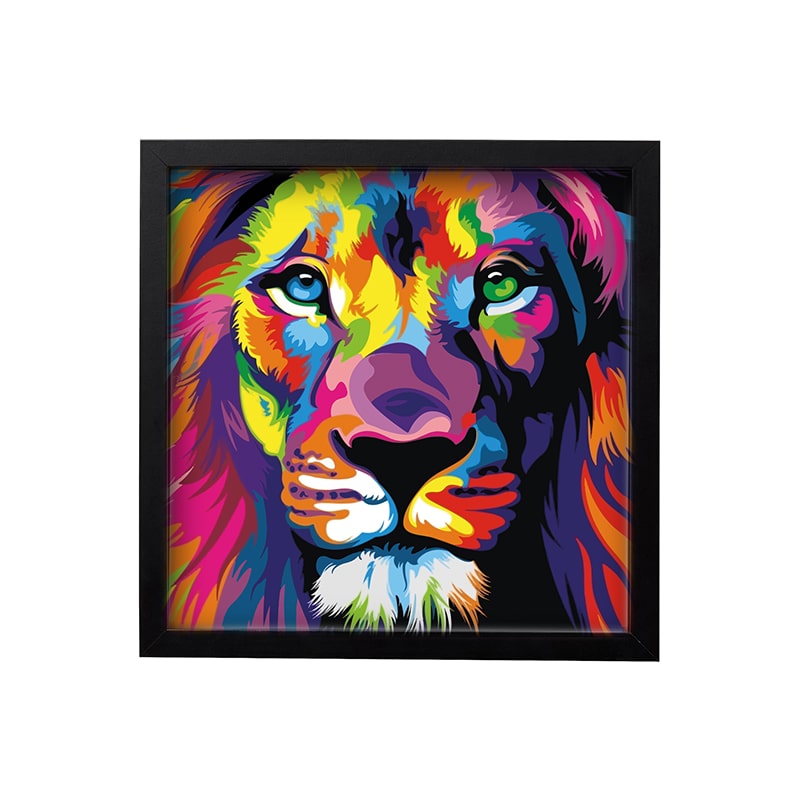 Caja de luz de 25 x 25 cm, vinilo impreso especial para retroiluminación, fijado en metacrilato transparente 3mm, iluminación led de 6W y 3000K (luz cálida), marco blanco o negro a elegir.