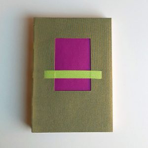 Cuaderno hecho a mano, los materiales usados son: papel canson, tela de encuadernar, papel reciclado blanco 120 gr, hilo encerado, costura vista y cinta de algodón. Colección Arquitectura de colores.
