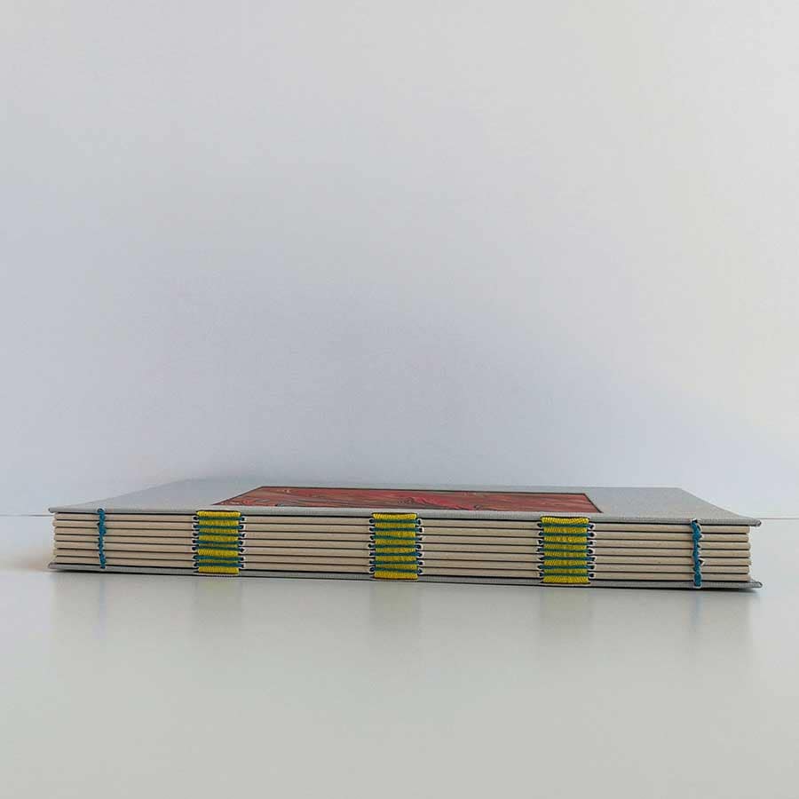 Cuaderno A5, con ventana, de la colección CLÁSICOS. Encuadernación artesanal hecha a mano, pero con un toque moderno y colorista, porque lo clásico no está reñido con lo actual. Alegría y elegancia para el día a día.