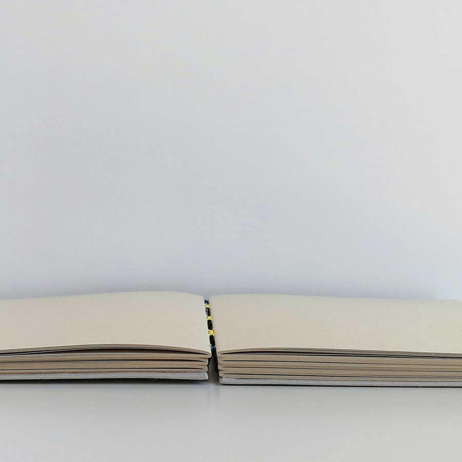 También pensamos en que sea práctico, con un tamaño A5 para que lo puedas llevar casi en cualquier sitio y una encuadernación de cintas que hace que tengas una abertura de 180º para que puedas escribir o dibujar cómodamente.