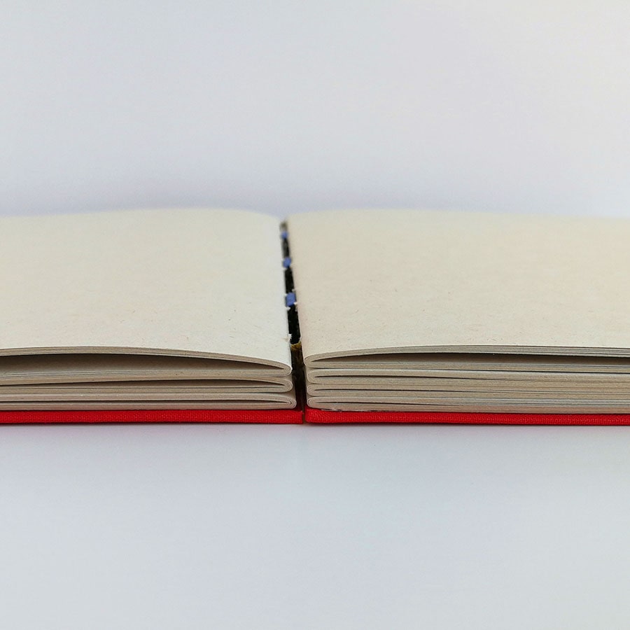También pensamos en que sea práctico, con un tamaño A5 para que lo puedas llevar casi en cualquier sitio y una encuadernación de cintas que hace que tengas una abertura de 180º para que puedas escribir o dibujar cómodamente.